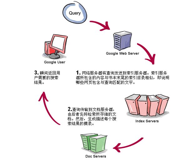 “谷歌搜索的时间通常只持续不到半秒钟,然而其中却涉及很多个不同的步骤。这些步骤在查询信息的人得到搜索结果之前必须完成。”